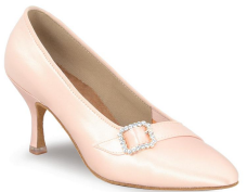A classic and elegant pointed toe ballroom shoe with a diamond buckle feature.